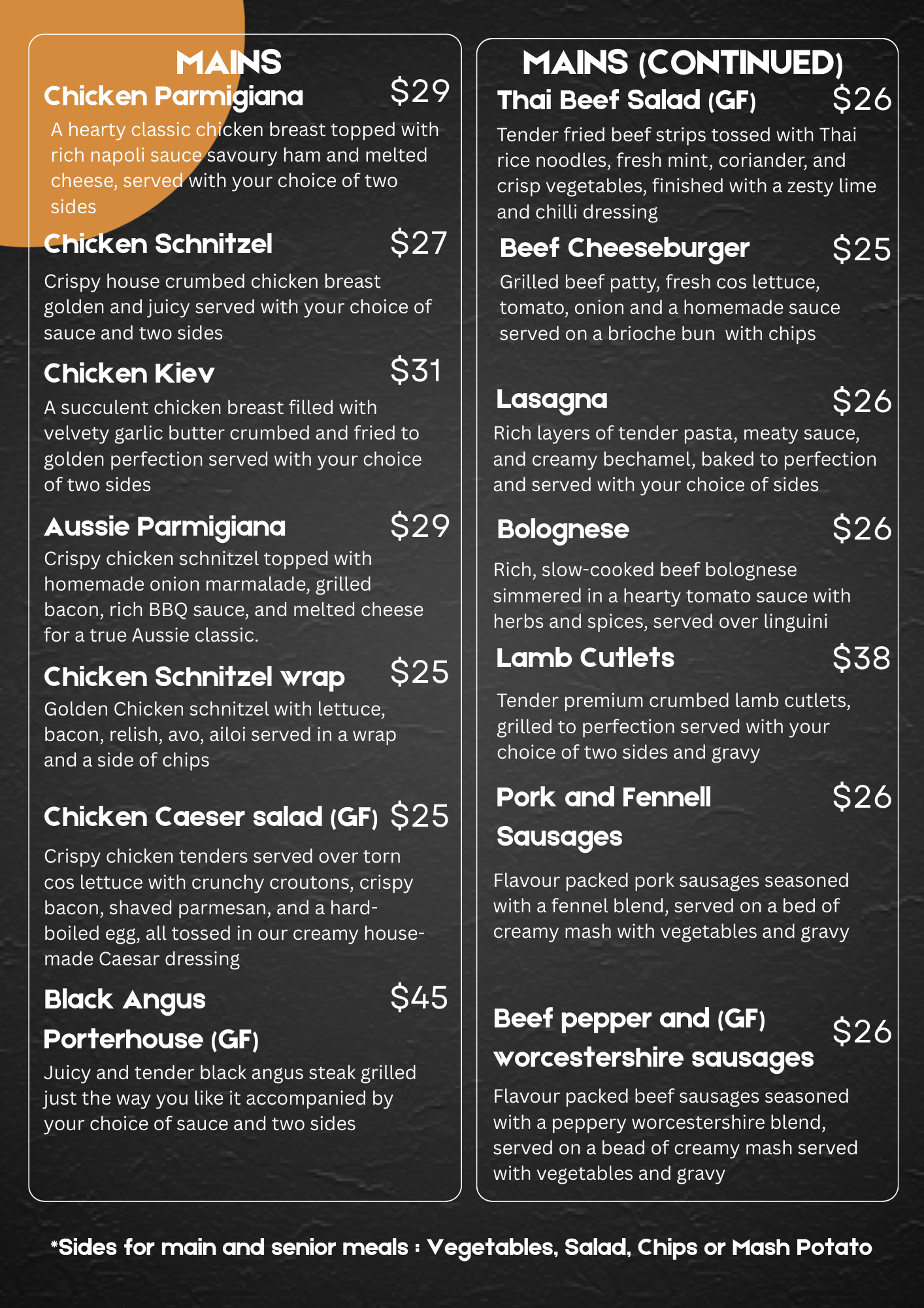 Bistro Menu
